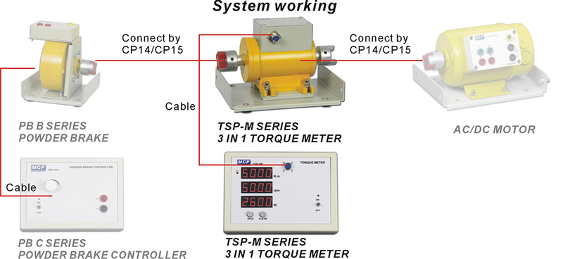 Complete motor torque measuring system by MCP – TSP Series dynamic torque sensors and 3-in-1 meters for torque, speed and power measurement.